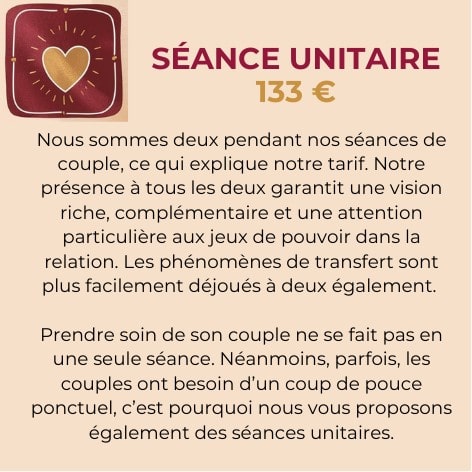 • Une écoute fine et une approche systémique pour comprendre les places de chacun·e dans votre relation.