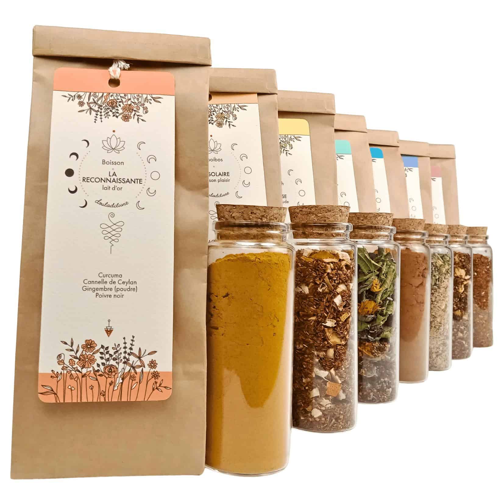 Mélanges de plantes pour tisanes et boissons. Cueillies et séchées avec amour par nos soins ou 100% BIO