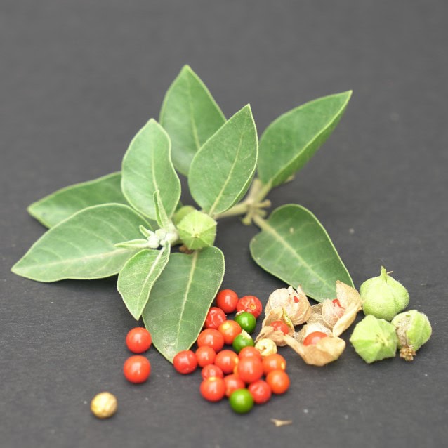 • Poudre de racines d’ashwagandha (Withania somnifera) : 350 mg par gélule, issue de notre culture en Isère.