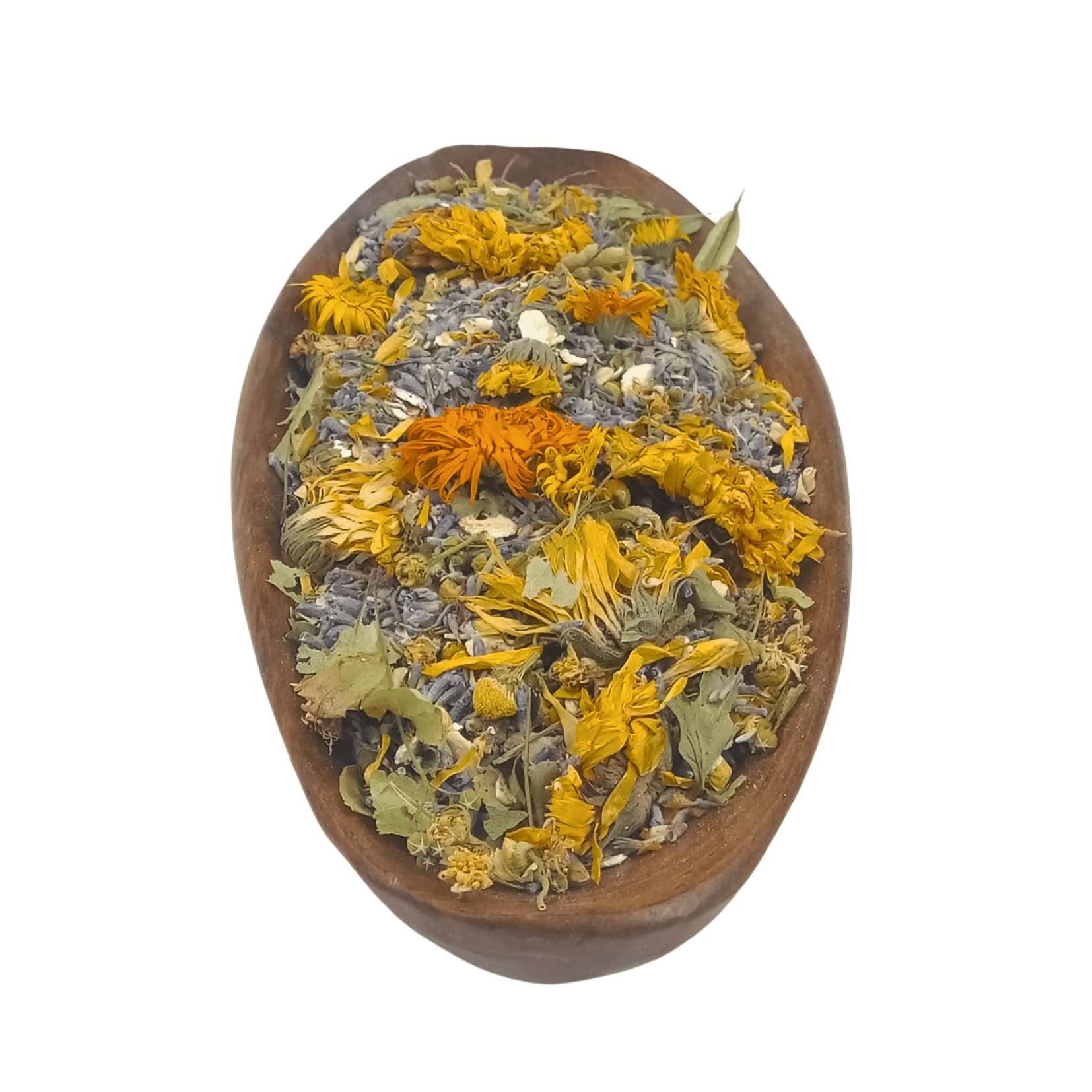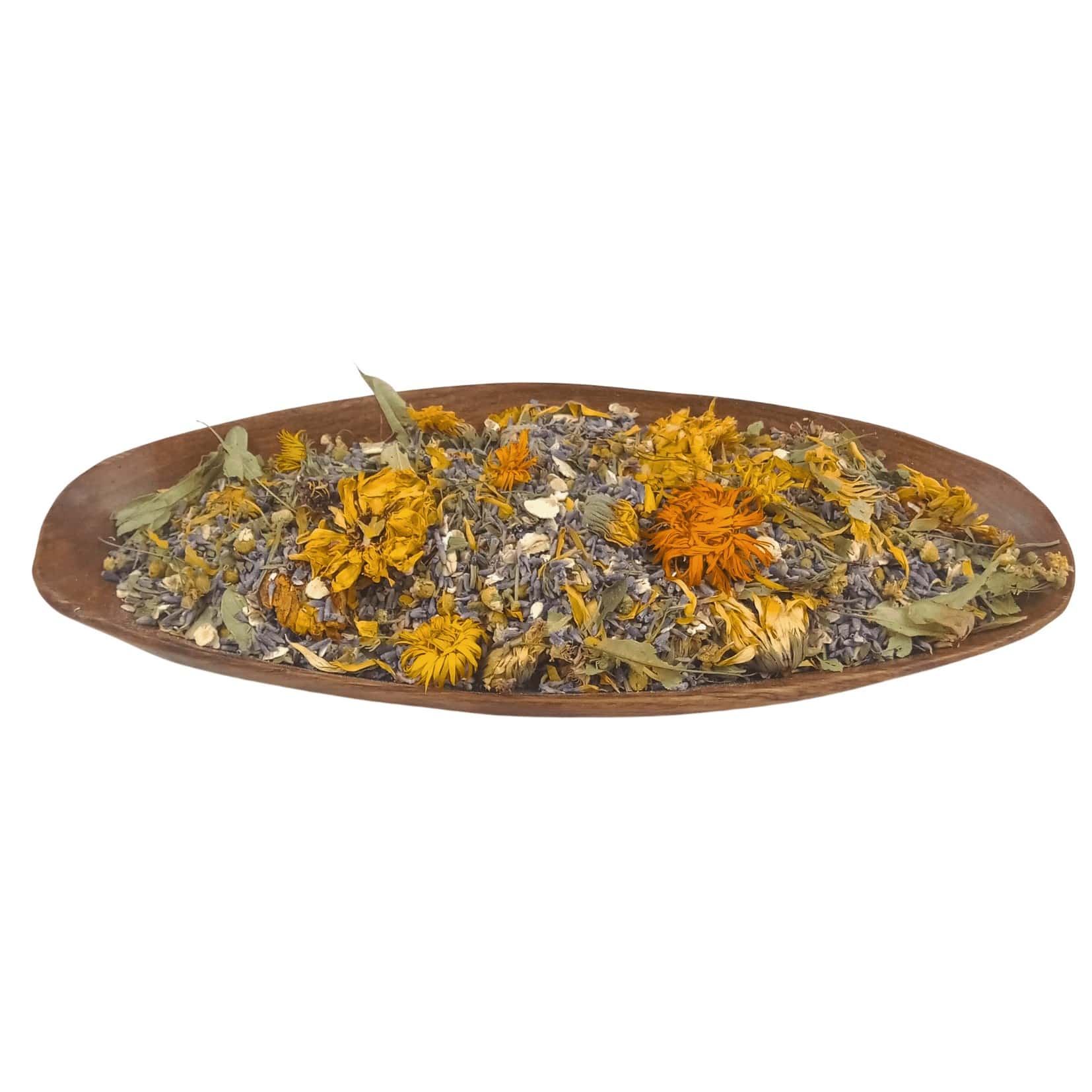 INCI : LAVANDULA ANGUSTIFOLIA FLOWER, AVENA SATIVA KERNEL FLAKE, CHAMOMILLA RECUTITA FLOWER, CALENDULA OFFICINALIS FLOWER, TILIA CORDATA FLOWER, CRATAEGUS MONOGYNA FLOWER /LEAF