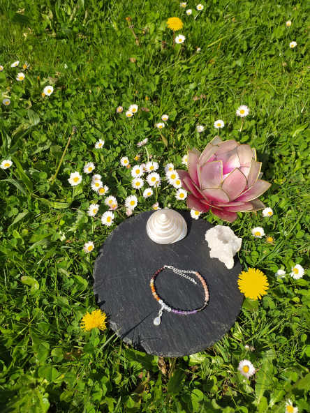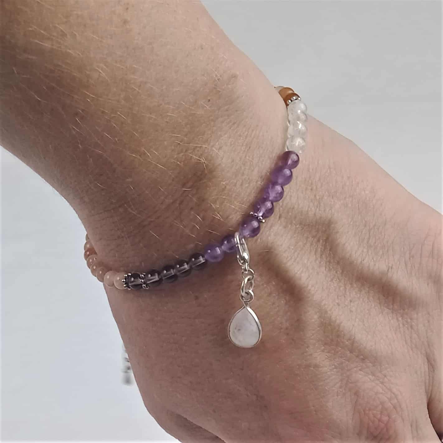 - Le bracelet déjà monté. Avec des perles de pierres différentes pour chaque phase du cycle et 10 perles pour suivre une éventuelle grossesse.