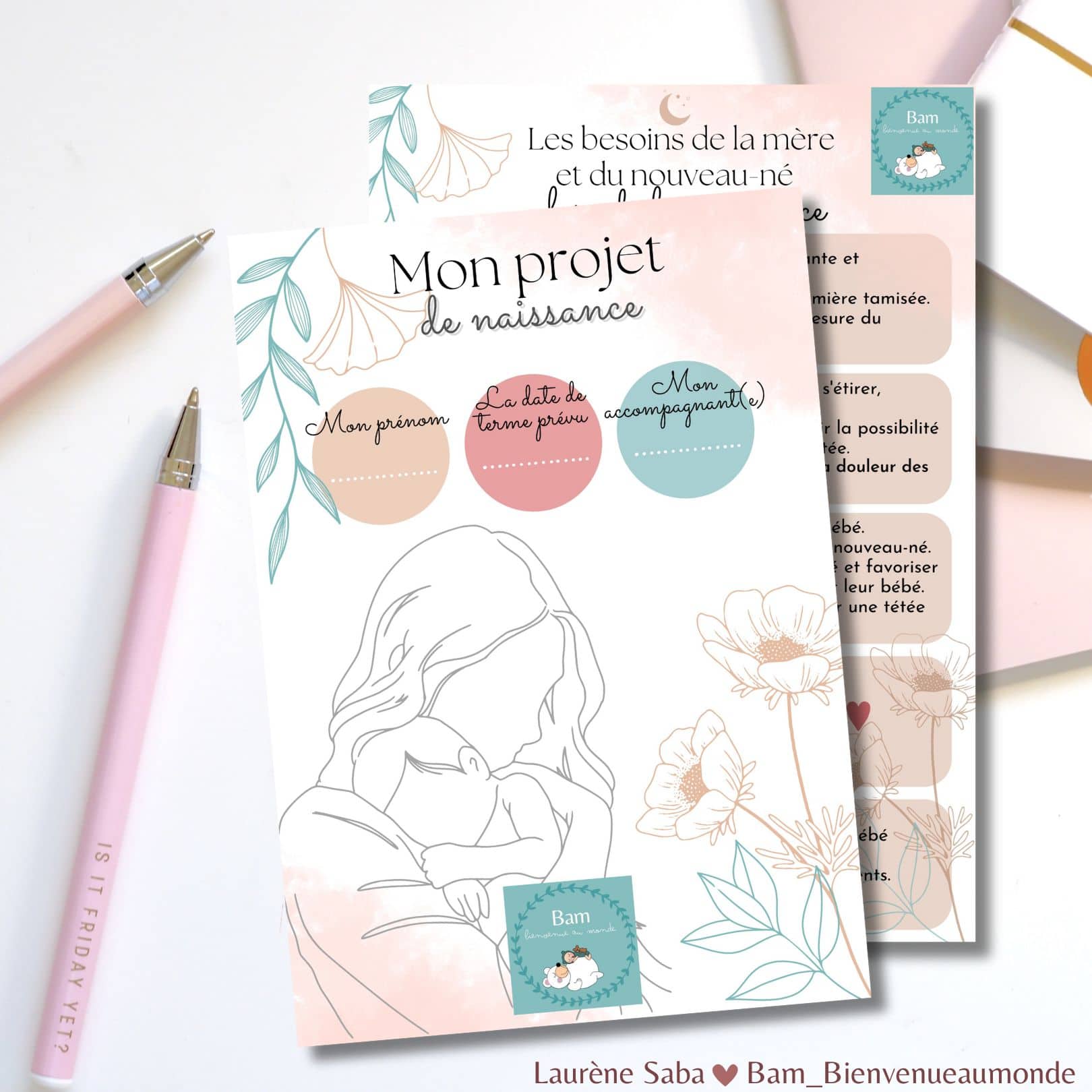 - Projet de naissance à imprimer (7 pages) : Clarifiez vos envies et partagez-les avec l’équipe médicale.