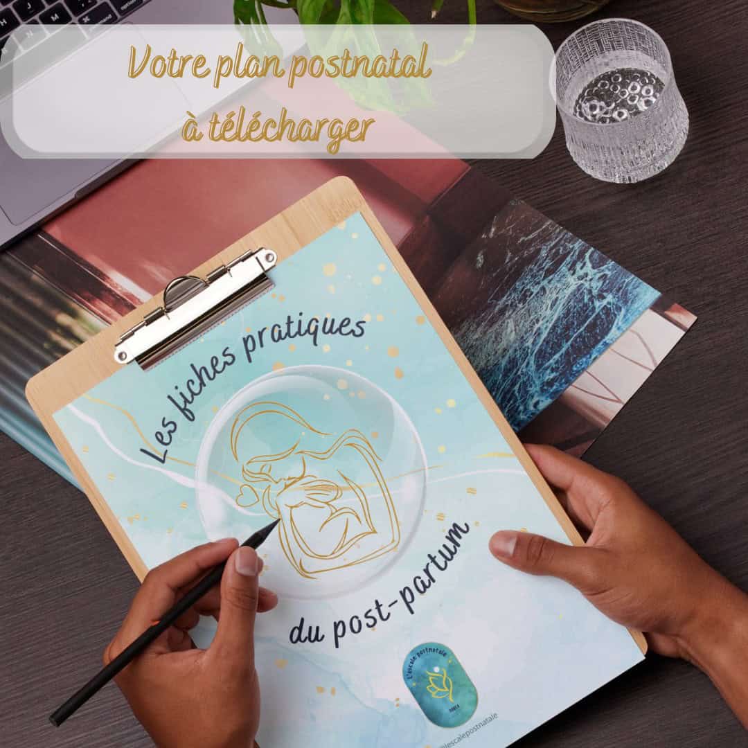 - Les fiches pratiques du postpartum (12 pages) : Organisez votre post-partum avec sérénité.
