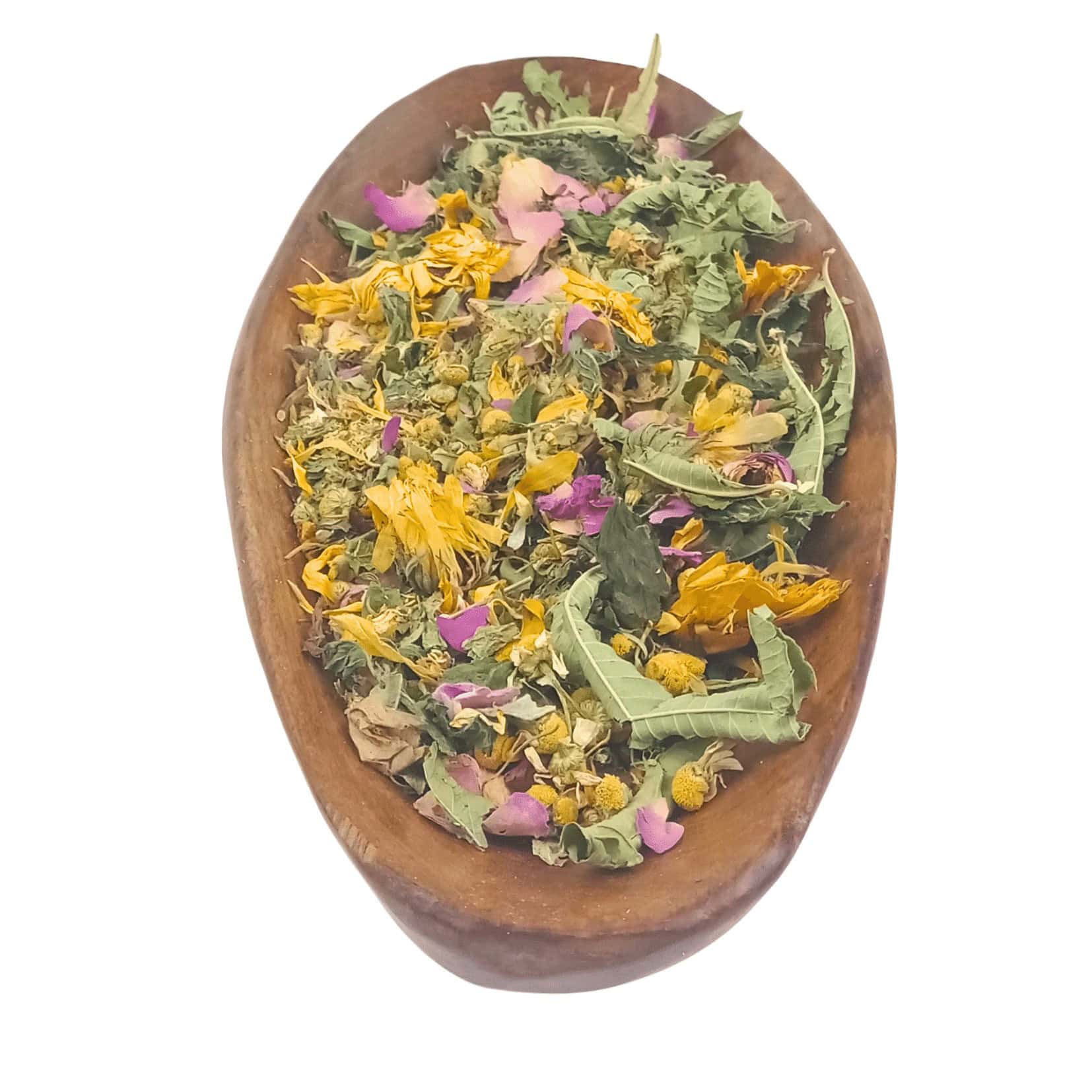 Mélange de plantes cueillies par nos soins et séchées tout en douceur, avec conscience et amour pour booster votre énergie de vie, votre vitalité, votre humeur et prendre soin du féminin en vous.