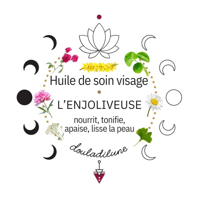 Après le nettoyage du visage avec l’huile LA DÉMAQUILLEUSE, procéder à un deuxième lavage avec un savon doux (comme notre savon L’ÉMOUSTILLANTE), appliquer un pschit d’eau florale pour rafraîchir et apaiser (comme LA BIENFAITRICE), appliquer ensuite en massages doux une noisette d’aloe vera avec quelques gouttes de notre ENJOLIVEUSE. Si vous n’avez pas d’aloe vera, vous pouvez tout aussi bien juste appliquer un peu d’huile et masser pour faire pénétrer.