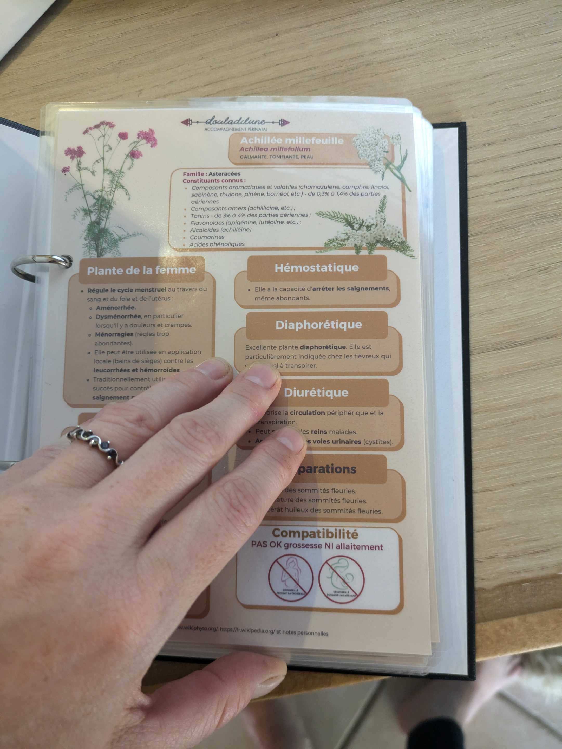Nous avons créé pour vous 47 fiches de plantes médicinales, un trésor d’informations concentrées dans un format A5 pratique, disponible en version PDF et en fiches plastifiées, rangées dans leur classeur dédié.
